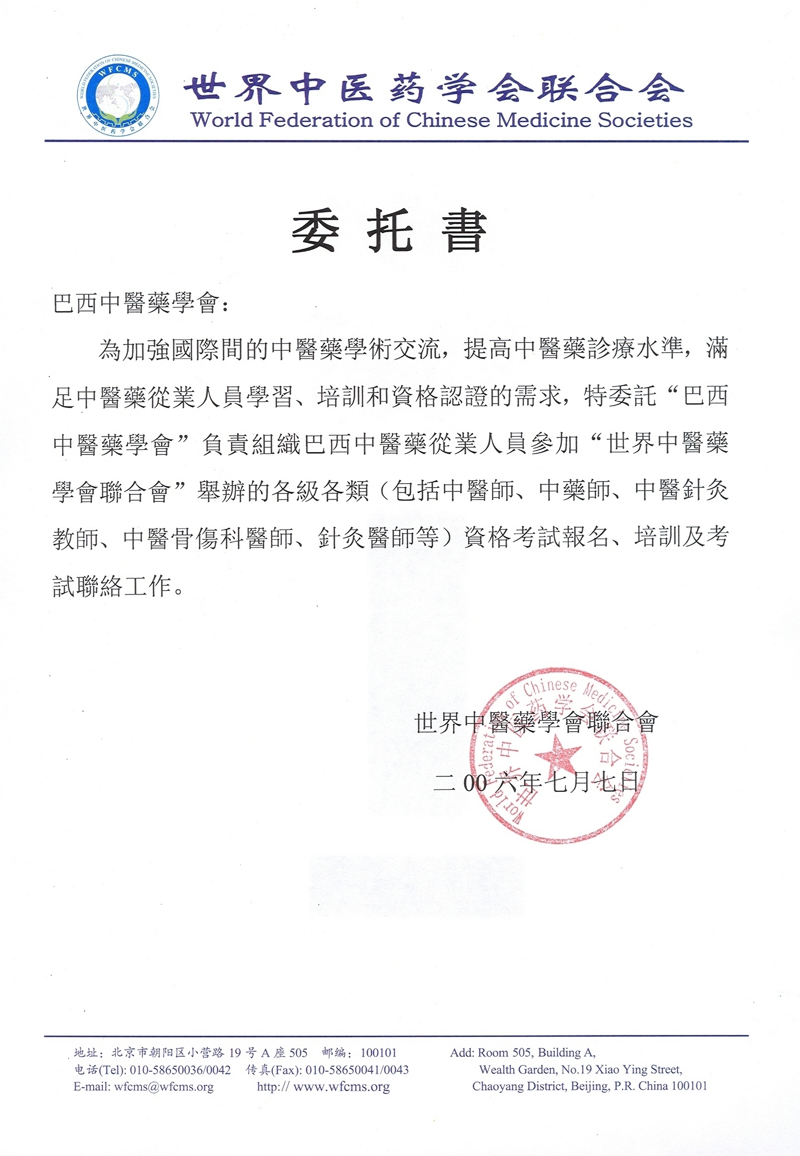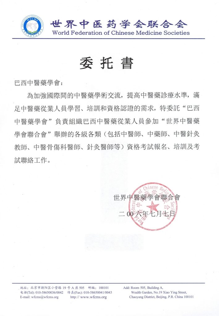 中醫藥專業技術職稱考試 (簡稱國際水平考試)由世界中聯 資格考試部主辦,本會負責在巴西考試所有相關事宜。目前有以下兩項專業考試: